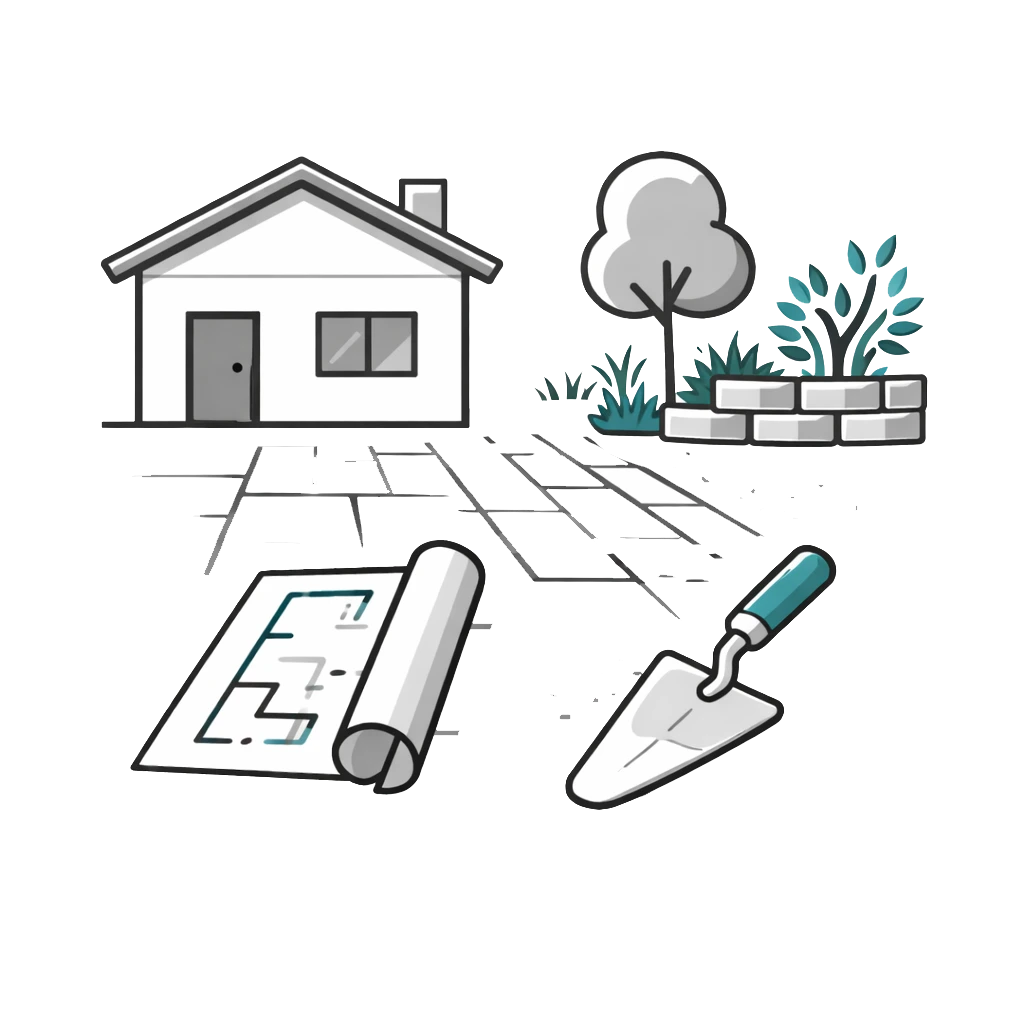 Gestaltung von Vorplätzen und Umgebungsarbeiten.